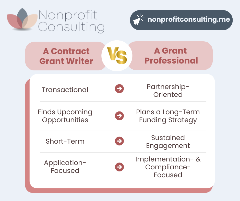 A contract grant writer completes a project. A grant professional builds a partnership.